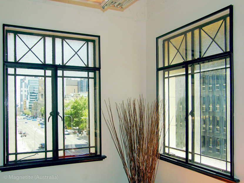 Magnetite's retrofit double glazing was installed on 49 steel-framed casement windows over three levels of Bunnik Tour's office. Due to the structure of existing windows, Magnetite's 10mm acoustic panels were installed directly onto the surrounding wall. In addition, this application allowed Magnetite to be fitted with a large air gap, to maximise noise reduction. Magnetite panels were aligned with the existing windows framing, to blend in and maintain aesthetics.